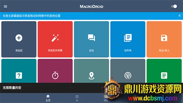 1、从MacroDroid主屏幕选择“宏”。