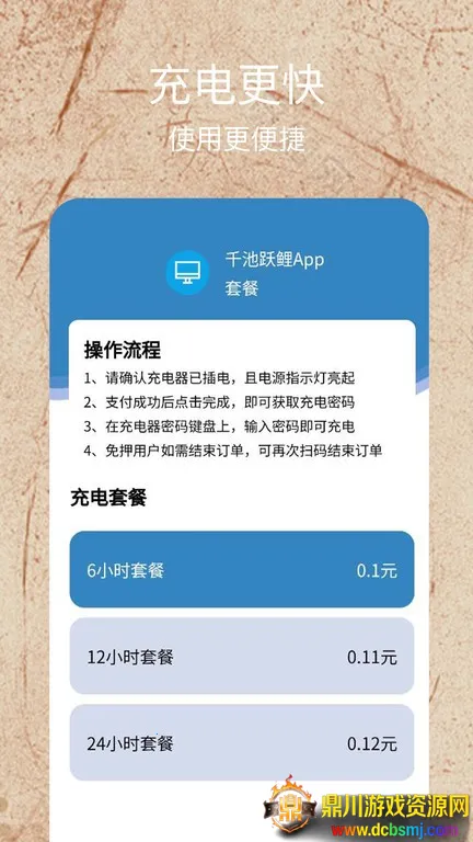 千池跃鲤最新手机版是专注移动设备充电服务的智能应用。能轻松租共享充电宝,解决电量焦虑。按天计费,功能智能,优化后台、检测电池等。特色有客服支持、商家加盟等,优势是透明计费、实时监控,还有一键归还等闪光点。