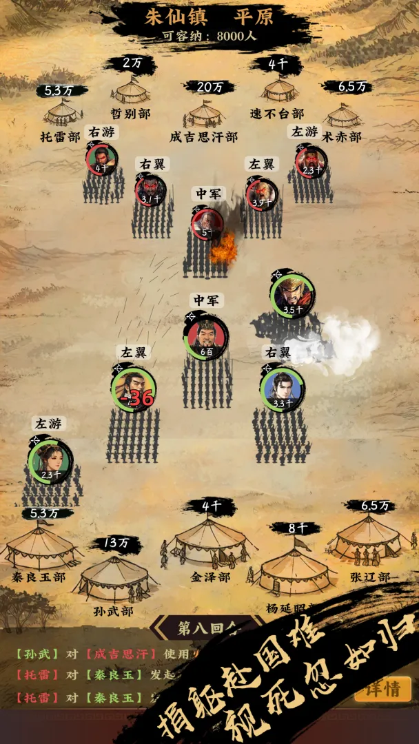 3、全方位策略体验:涵盖战场布局、内政管理、武将培养等,从点兵到战略布阵,每个决策都影响战局,书写帝王传奇。