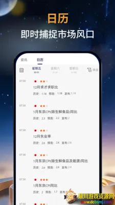 2. 日历行情实时动态更新,全球的财经事件即刻展示在面前。