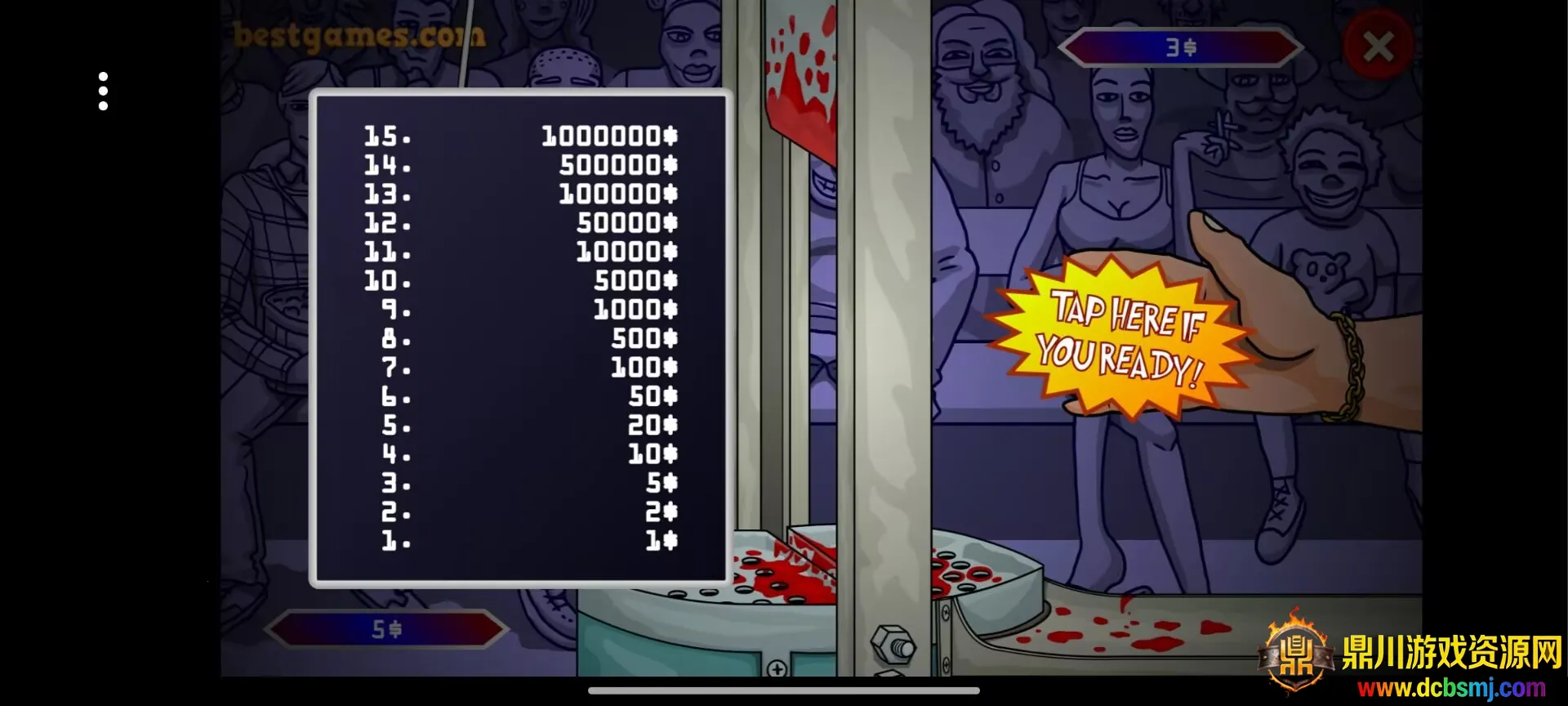 这是一款独特的小游戏。操作简单,仅靠鼠标左键点击拖动,界面简洁,易上手。游戏节奏紧张刺激,玩家操控虚拟手穿越机关收集美钞,要精准把握时机躲避闸刀。14个关卡难度递进,新机关和更快闸刀增加挑战。惊悚血腥的视觉效果,触碰闸刀鲜血喷溅,增强代入感。还有多种辅助道具,能助玩家完成挑战。最终目标是成百万富翁,按带回钞票数量评分。整体体验轻松又刺激,很适合喜欢挑战反应和决策能力的玩家。