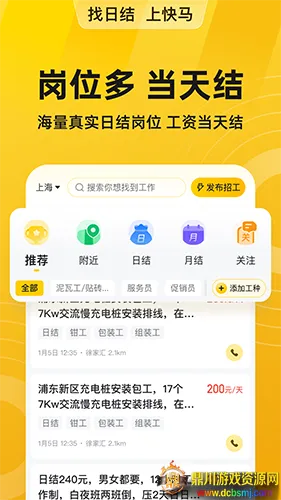 快马日结是专注蓝领行业日结兼职招聘的软件,功能丰富。有海量真实岗位,多行业工种分类,支持招聘者免费发布招工信息,高效匹配,能满足用工企业和蓝领群体需求,助其轻松招工找活。