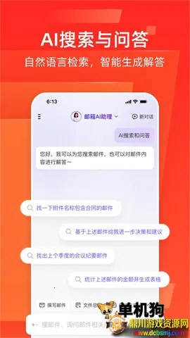 具备优化阅读体验,支持深色模式,字号可调,会话聚合让邮件往来更清晰。
