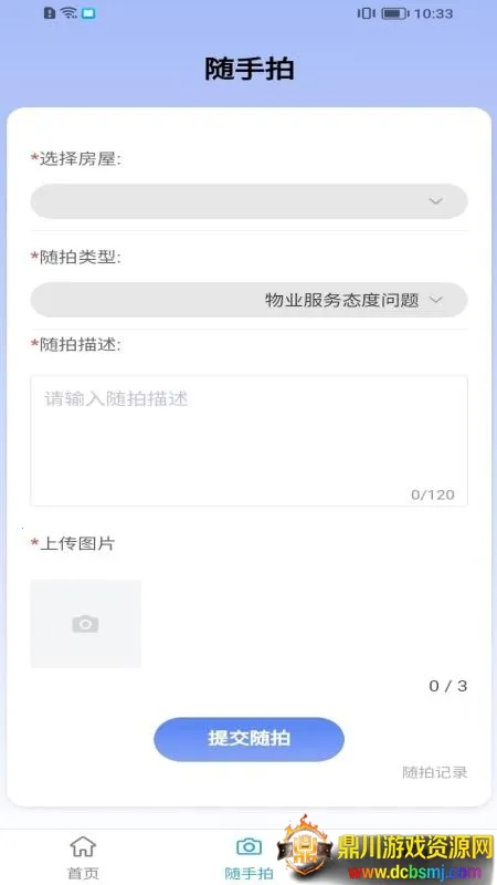 3. 随手拍功能可上传照片并描述事件上报处理,让各种物业问题得到及时响应,有效反馈物业问题。快速反馈物业问题