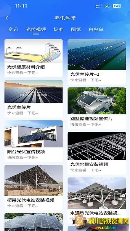 2. 专业学堂助学习:提供线上鸿讯学堂,有丰富的光伏视频等资源,方便用户学习更多新能源知识,尤其能轻松掌握光伏资讯知识。