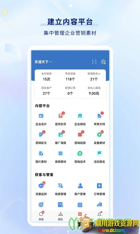 乐语是一款超棒的企业运营管理软件。它能帮你高效管理客户资源,提升品牌曝光度。有快速撰写带广告营销软文并一键分享到社交网络的功能,还能管理会员卡积分和分销提现。一键备份手机通讯录,给好友分类或添加图文备忘录也很方便,收藏喜欢的手机网站或商城,实现一键打开与分享。它采用IOS系统友好操作界面,新增数据在相关模块右上角以红圈角标显示,提醒及时处理,避免线索浪费。制定了科学考核体系,管理者能控制运营过程,财务人员可评估营销岗位绩效。控制营销过程,固定营销岗位,让网站营销运营链条严谨转动。如果你是企业或营销人员,乐语能满足你在客户管理、商务社交和市场推广等多方面需求,快来下载开启智能化运营管理之旅吧。