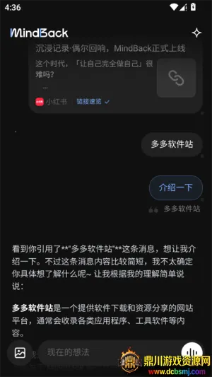 MindBack是款不错的应用。它能快速记录多种形式内容,后台自动串联零散记录,内置AI助手超实用。比如粘贴网页链接能自动生成摘要,还有生活节奏可视化功能。它能存储多种内容,适合随手记录的人。使用中虽可能有记完返回内容消失、语音转文字不准等问题,但按提示操作可解决。目前部分功能在优化,整体而言,对于想用AI管理个人信息和回忆的人是个值得尝试的选择,能助力轻松召回过往记录。