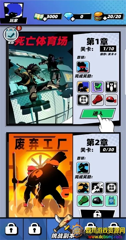 4. 关卡章节众多,难度随进度增加,需升级角色、强化武器来闯关。