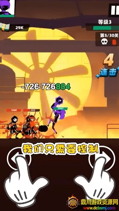 3. 全竖版操作方式,操控火柴人热血格斗,搭配技能属性。