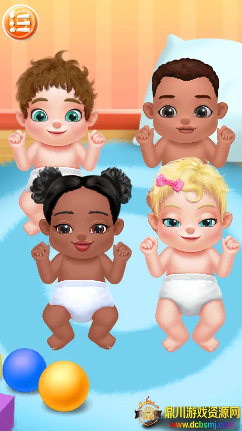 1、在本站下载安装该游戏,打开进入点击播放键,这里有四个宝宝,你要先把每个宝宝都哄开心,点击逗弄他们就行。