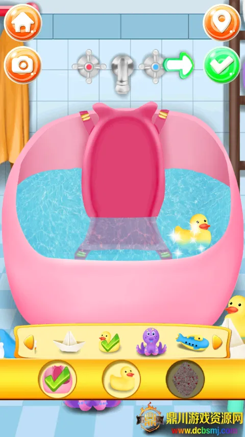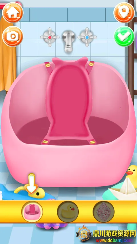 2、随后你就会进入照顾宝宝的任务当中,首先要做的是点击第一个关卡帮宝宝洗澡。
