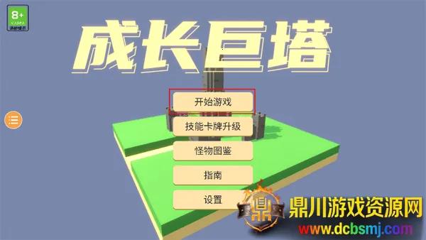 1、打开游戏,会看到有几个功能按钮:开始游戏、技能卡牌升级、怪物图鉴、指南、设置,点击“开始游戏”。