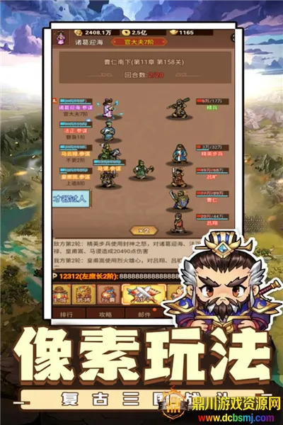 1. 复古像素画风,将三国世界描绘得栩栩如生,带来独特沉浸式体验,仿佛穿越回历史时刻。