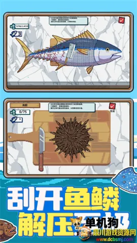 4. 像素风格设计独特,在海洋中畅享捕鱼欢乐,还能体验刮鳞解压与美食制作的精彩。
