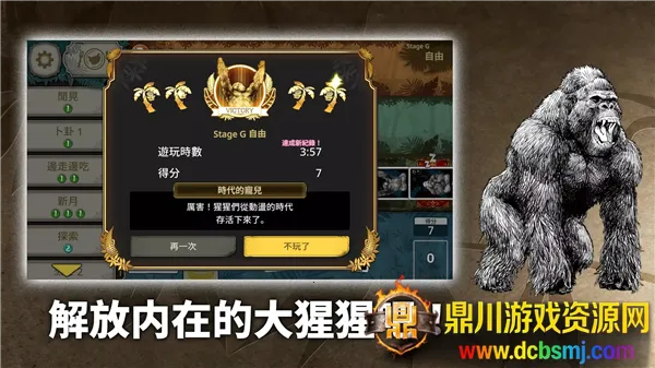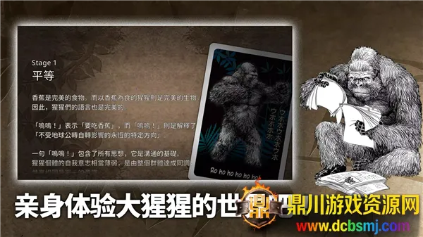 1猩猩智能进化机制:猩猩会持续模仿玩家动作,智力和思维能力提升,产生协作行为,关卡推进时更多种类猩猩加入追击阵营。