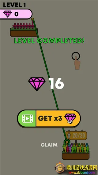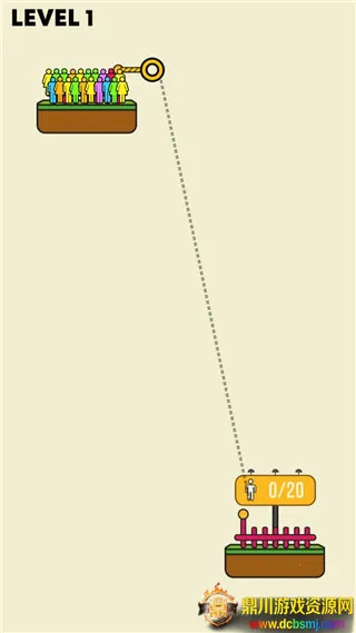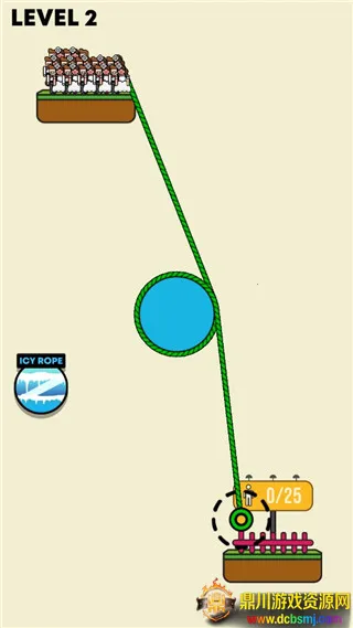 4、然后进入第二关便可开始游戏。同理,玩家需要搭建绳索,让这些人都到达安全区;