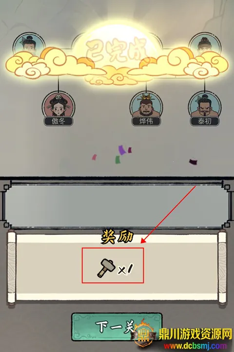 5、所有圆框正确填入就可以通关并获得锤子奖励啦。