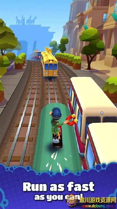 这是一款超刺激的跑酷手游。主角是爱涂鸦的船员,开场就因涂鸦遭警察带狗追捕。玩家要快速冲刺,躲避迎面火车。游戏设有排行榜,提升排名可获奖励解锁新角色。操作简单,通过滑动躲避障碍火车,还能捡道具如磁铁、超级跑鞋等。画面多彩高清,有3D引擎设计,表现细腻。玩法丰富,能自由装扮火车,体验滑板冲浪,还有多种难度玩法,道具装备多样,能满足不同需求,带来爽快冒险体验。
