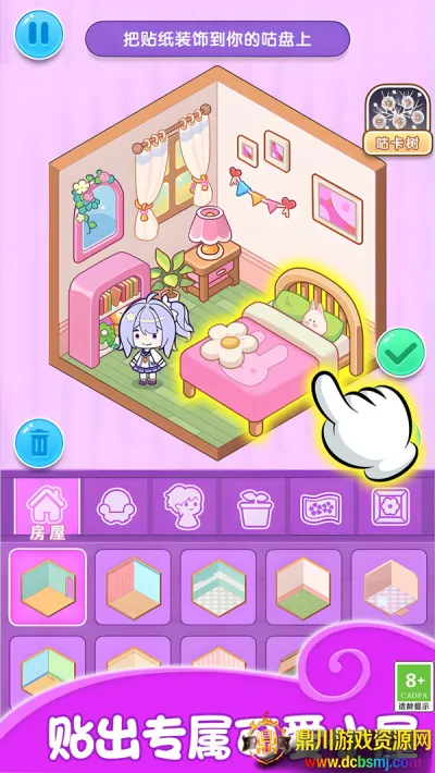 这款游戏十分有趣。玩家能在许多可爱房间中,用各种贴纸装饰,有不同风格家具和摆件,自由度超高。**贴纸的动态效果**让小屋更生动立体,还能自定义布局。海量玩法免费畅玩,关卡内容各异,长时间玩也不乏味。对新手友好,轻松上手。画风简约可爱,贴贴纸能放松心情。完成任务挑战可解锁稀有贴纸,参观邻居小屋能学习装扮理念。能保存图片参与比赛,是打发碎片时间、满足创作欲的最佳选择,值得下载。