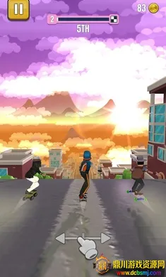 4. 卡通街机视听风格:采用3D建模并搭配高饱和度配色,角色动作夸张搞笑,碰撞瞬间表情丰富。背景音乐节奏感强烈,滑板滑行声、跳跃声效清脆,营造出轻松欢快的街机厅氛围。画面优化良好,中低端机型也能流畅运行,且不会牺牲视觉表现。