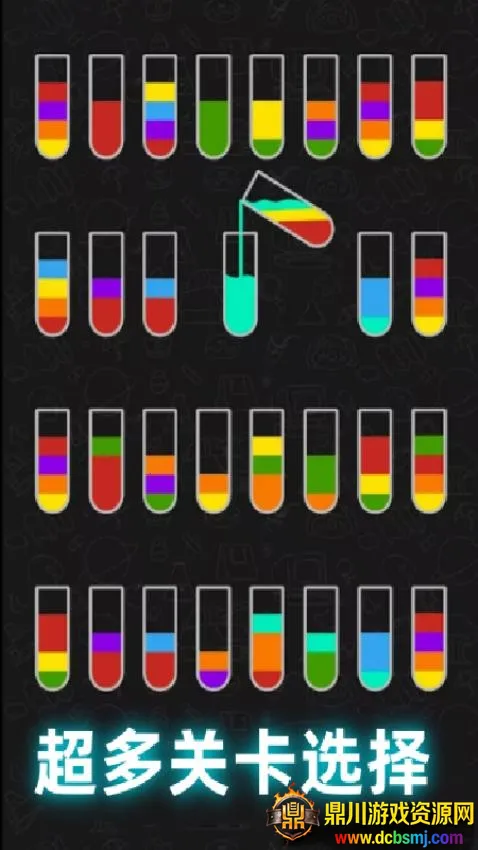 6、如图所示,显示非常多的瓶子,显示很多颜色液体,开始点击瓶子倒水分类吧