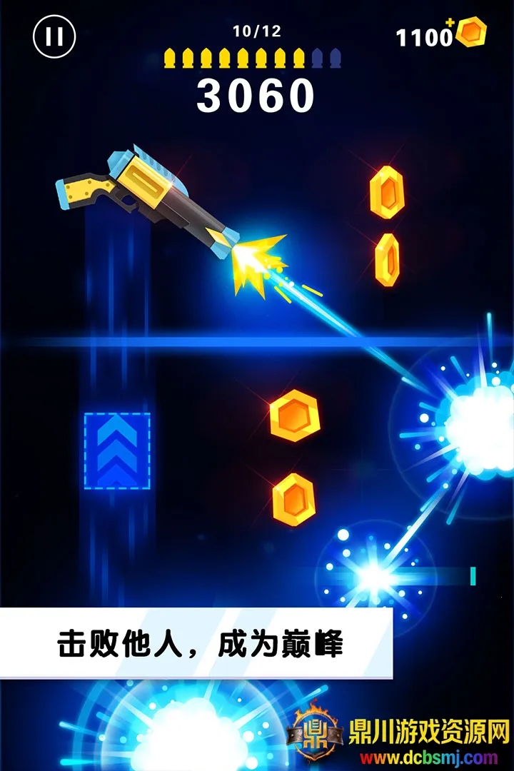 翻转射击2026官方最新版本是一款休闲物理射击手游。有15款基于物理的武器,独特游戏机制,竖版操作。利用射击后坐力上升,吃金币子弹获高分,解锁强力枪械,画面炫酷,音效逼真,玩法简单易上手。