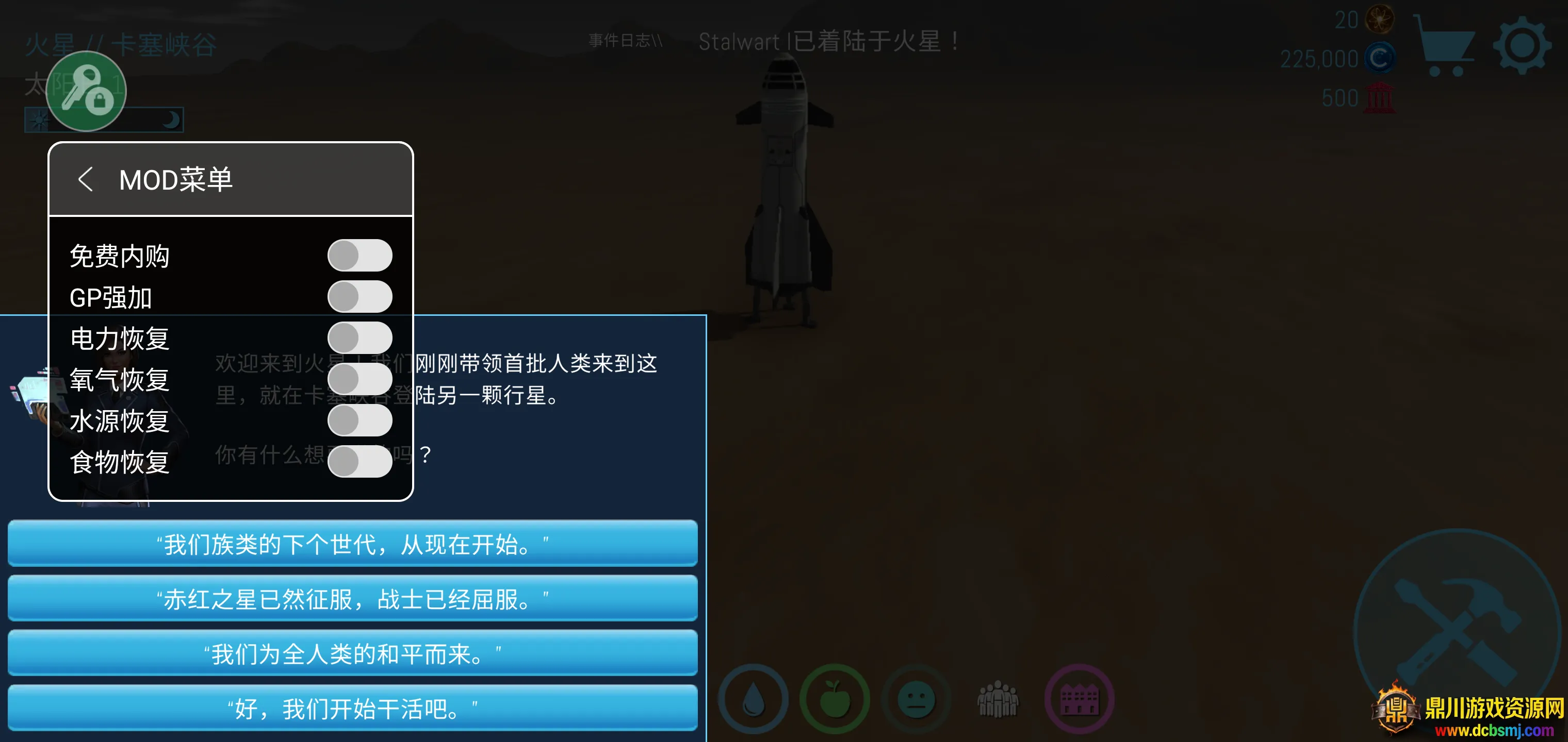 4. 应对多样挑战:随机活动带来更多挑战,玩家需管理资源,如氧气、水和食物等,确保居民健康,平衡资源生产,提前规划并解决各种问题。