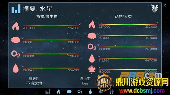 3. 能更改星球特定属性,支持人类生活,打造专属星球。
