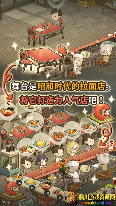 通过完成任务、升级设备,能提升经营能力和菜品水平。顾客吃了料理满意度上升,还会引发对话、解锁更多故事。游戏玩法简单易上手,适合休闲放松,快来经营这家充满回忆的拉面食堂吧!